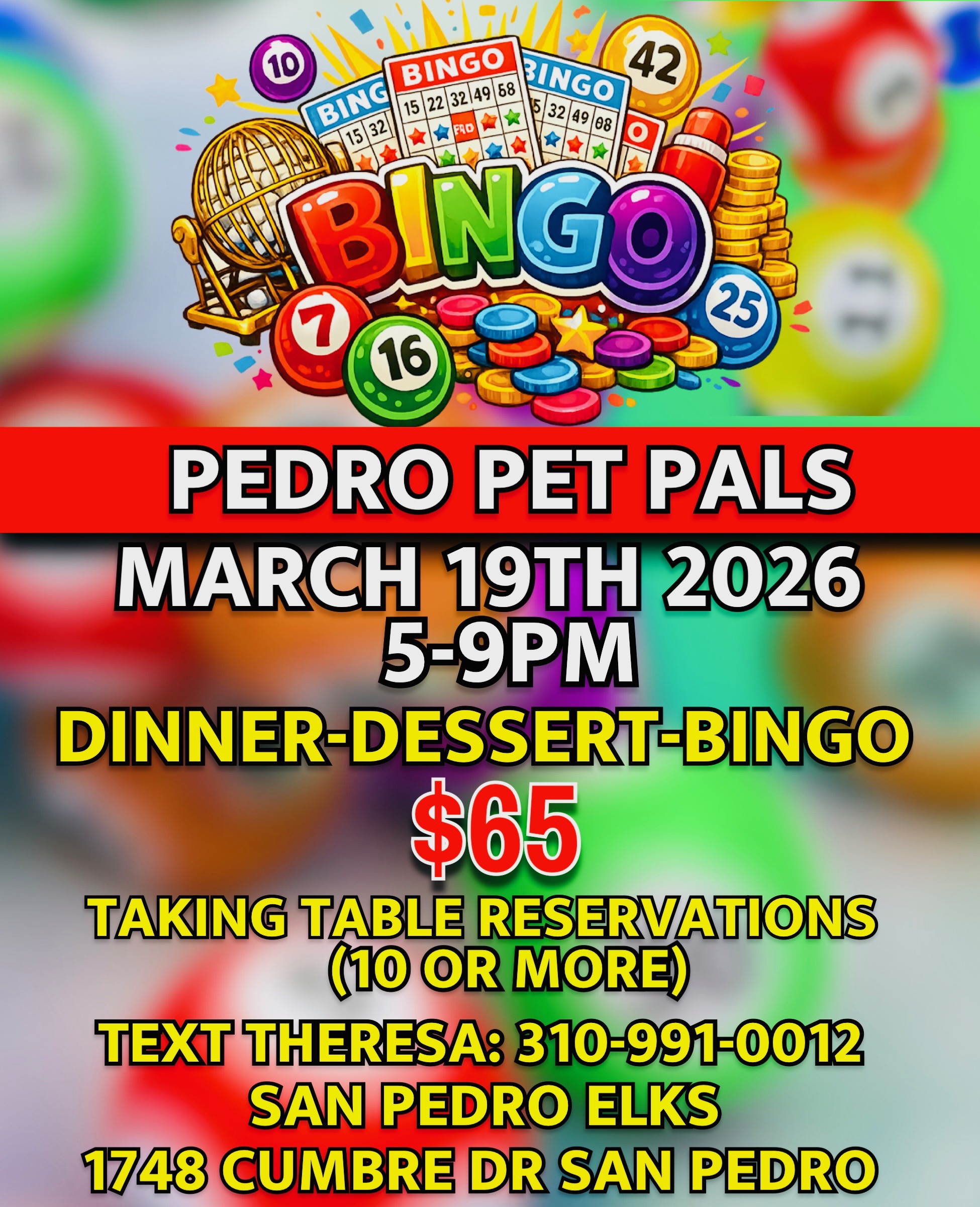 Pedro Pet Pals Semi-Annual Bingo Night – South Bay Animal Charity Fundraiser